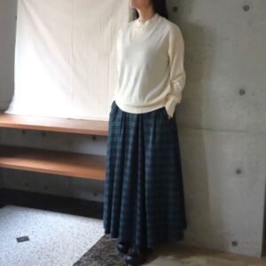 軽やかな着心地と柔らかな風合いが魅力のムースヤーンハイネックニットに、クラシカルな雰囲気漂うロイヤルタータンタックロングスカートを合わせた大人フェミニンコーデ。ふんわり質感のニットが女性らしさを引き立てつつ、程よいゆとりで体のラインを拾わず安心。落ち着きのあるハイネックが顔まわりをすっきり見せてくれます。スカートは、たっぷり入ったタックが生み出す美しいフレアシルエットで、動くたびに上品な華やかさをプラス。ブリティッシュトラッドなタータンチェックがシーズンムードを高め、カジュアルにもきれいめにも活躍します。冷えやすい季節にもしっかり対応しながら、コーデ全体に華やぎを与えるスタイル。秋冬のお出かけや、ちょっとした特別感を演出したい日におすすめです。