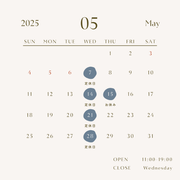 5/15(木)はお休みをいただきます。